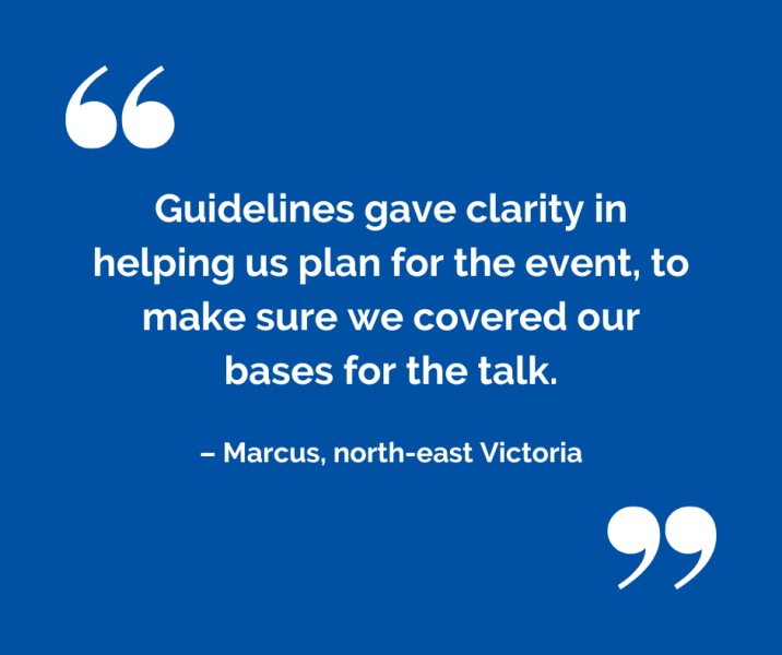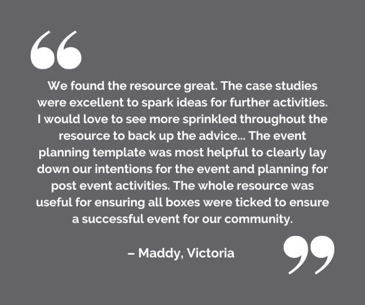 “Having the guidelines available gave us confidence that we were approaching things the right way. It helped us move beyond just hosting a social night – we were able to create something that had real meaning and impact.”