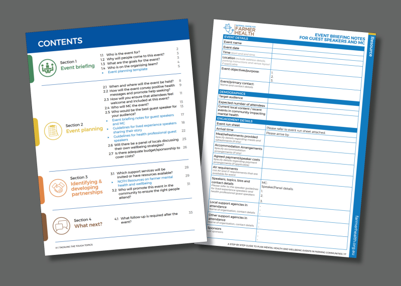 You understand your community better than anyone. That’s why we created Tackling the Tough Topics, a practical, step-by-step guide to help you plan events that support mental health and wellbeing in farming communities.