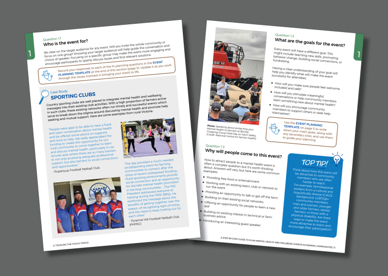In 2025, over 200 applicants used Tackling the Tough Topics to plan events as part of the Look Over the Farm Gate community events, funded by Agriculture Victoria.